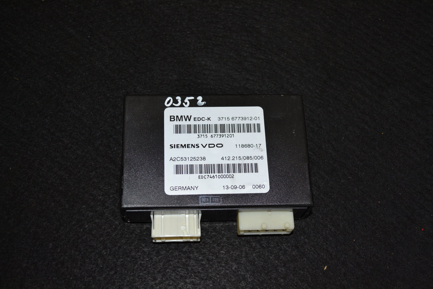Модулът за управление на окачването EDC-K с OEM номер 6773912 е оригинален компонент на BMW, който управлява електронното регулиране на амортисьорите (Electronic Damper Control) и адаптира твърдостта им според пътните условия и избрания режим на шофиране.