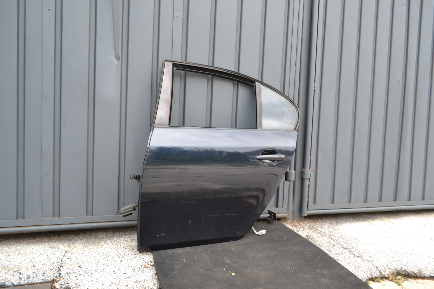 Вратата е оборудвана както е на снимките, стъклото не се вижда защото е свалено във вратата.